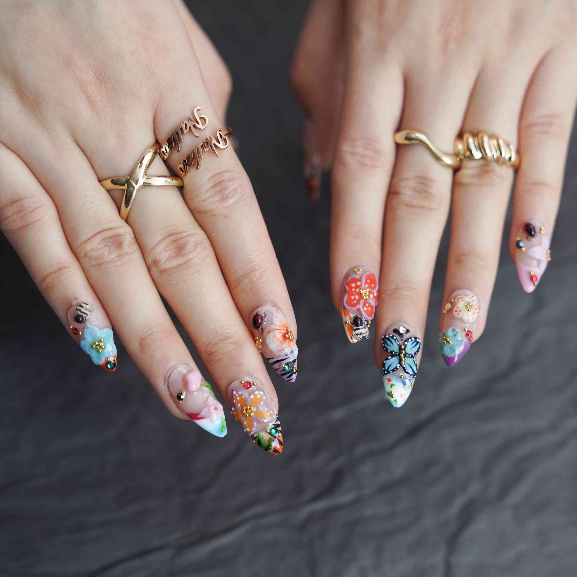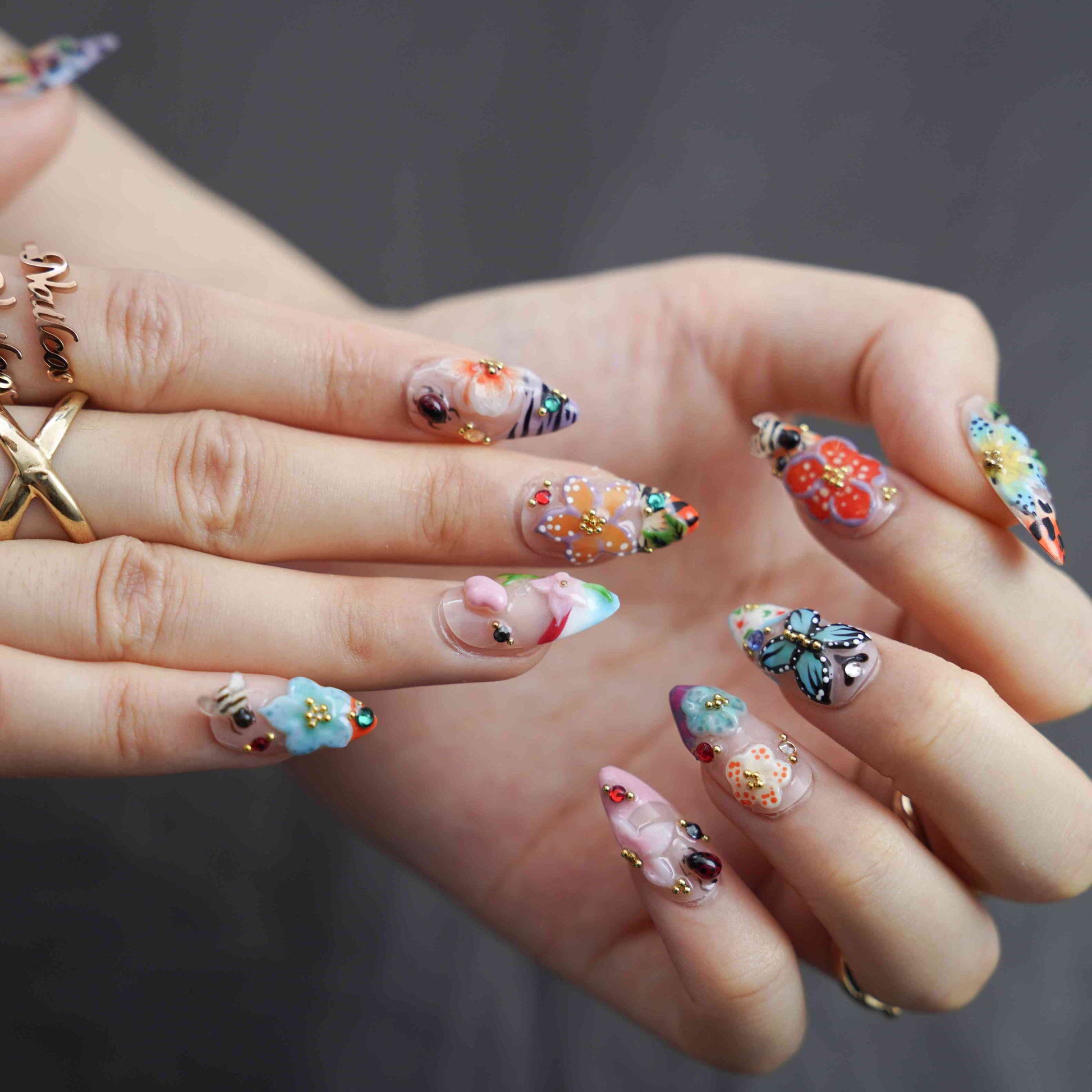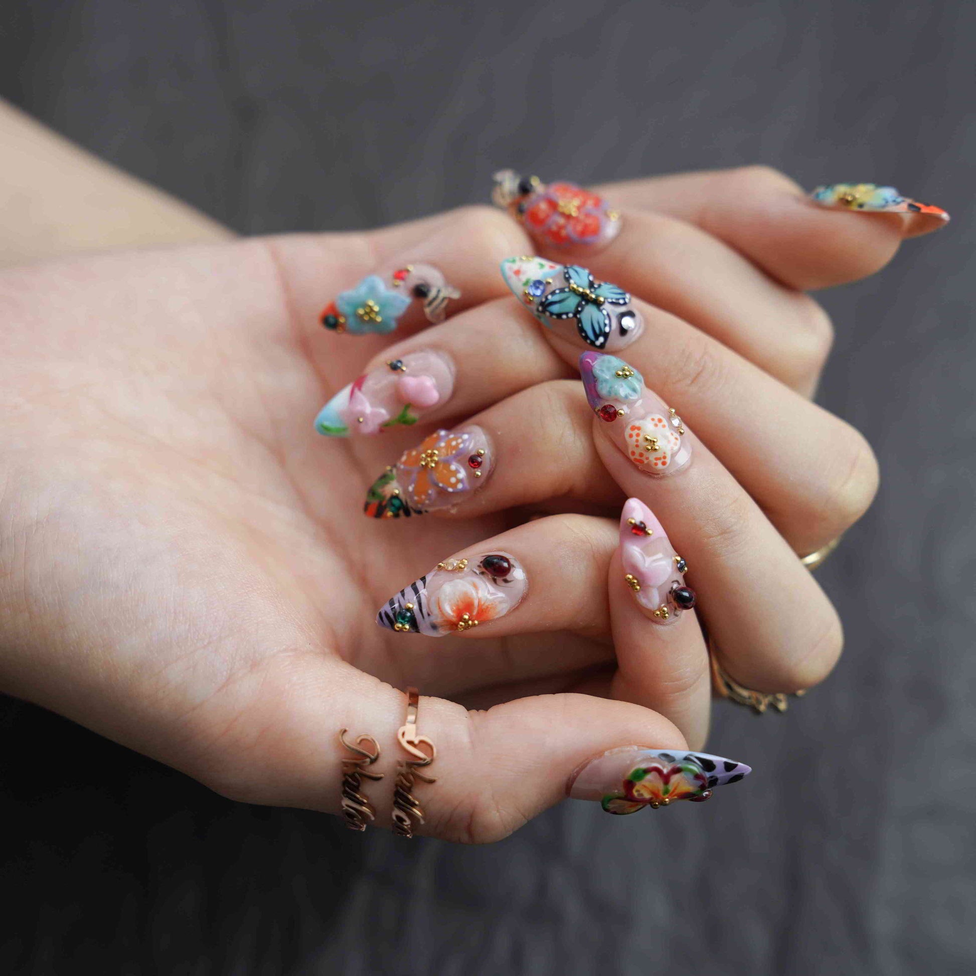 Flora Fauna features a 3D Floral design on Medium Almond press-on nails, exuding an elegant and charming mood. Our diverse, handmade brand infuses each nail with creativity and uniqueness. These 100% handmade nails offer salon-quality beauty.