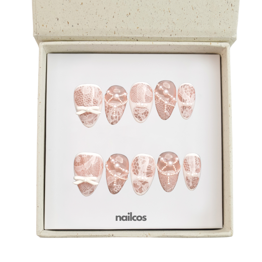 Ivory Veil features short almond press-on nails with a lace style, evoking an elegant and refined mood. Our diverse, handmade brand infuses creativity into each design. These 100% handmade nails offer salon-quality beauty.