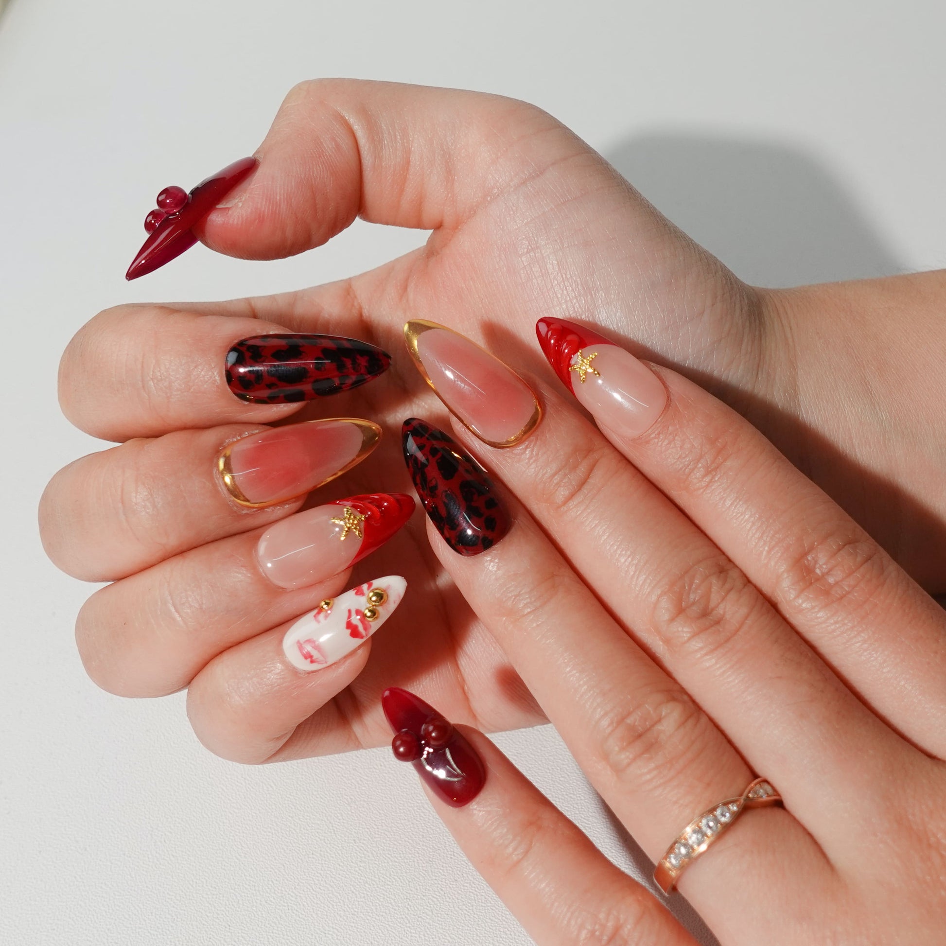 Kiss me wild offers a trendy look with Medium Almond press-on nails in 3D and Painted styles. Our diverse, handmade brand infuses creativity into each design. Every set is 100% handmade for salon-quality elegance.