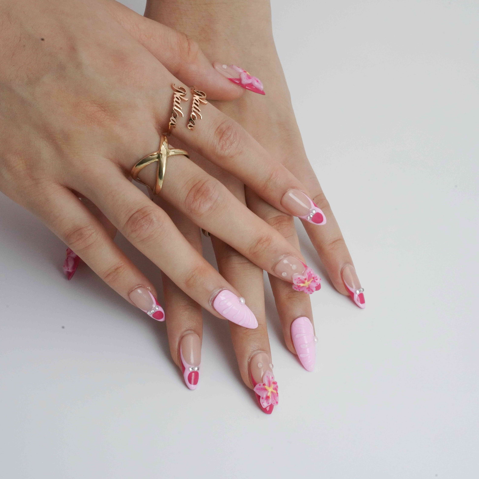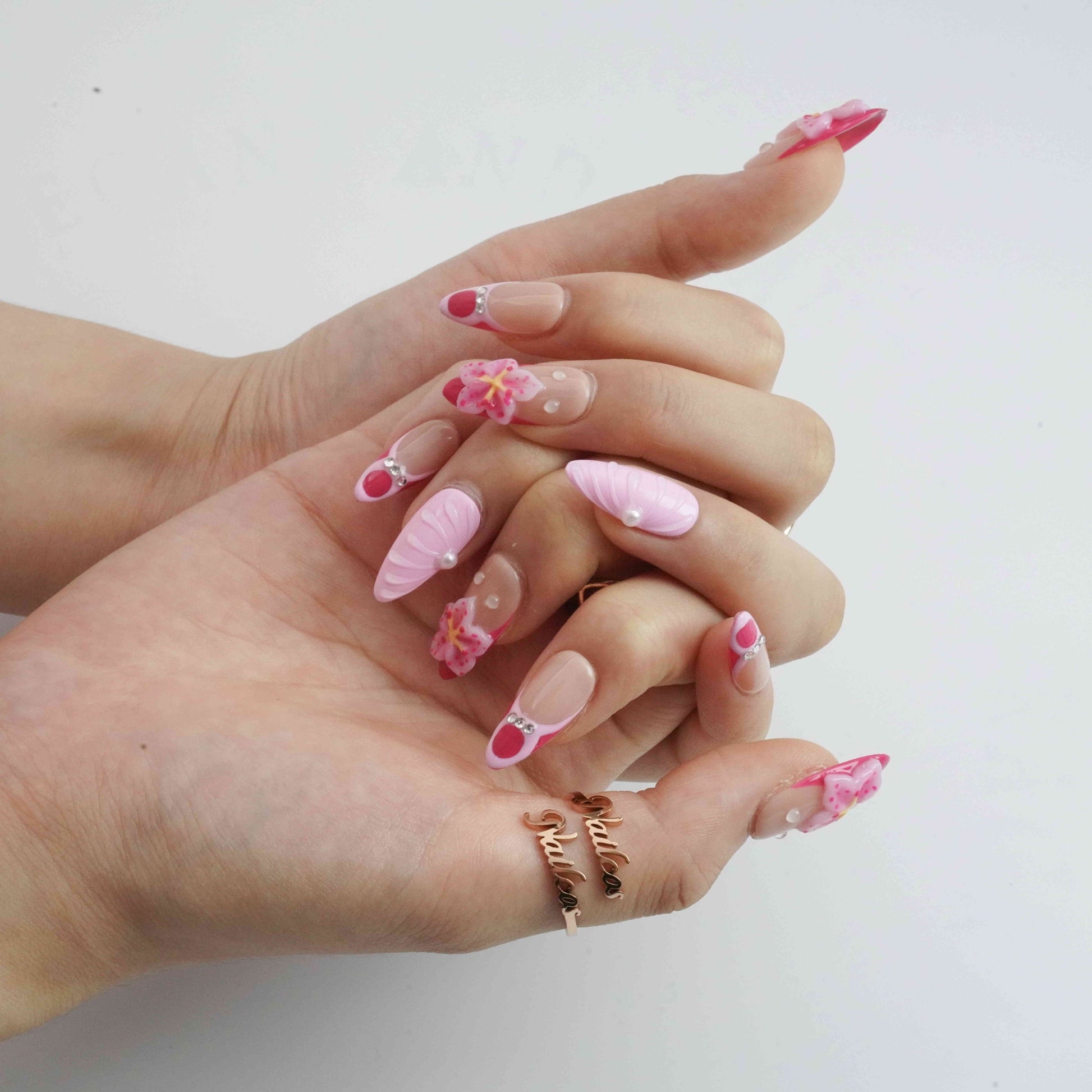 Lily Glow features a Medium Almond shape with a 3D Floral, Spring style. These press-on nails bring a fresh, delicate mood. Our diverse, handmade brand infuses creativity into each design. They're 100% handmade for salon-quality results.