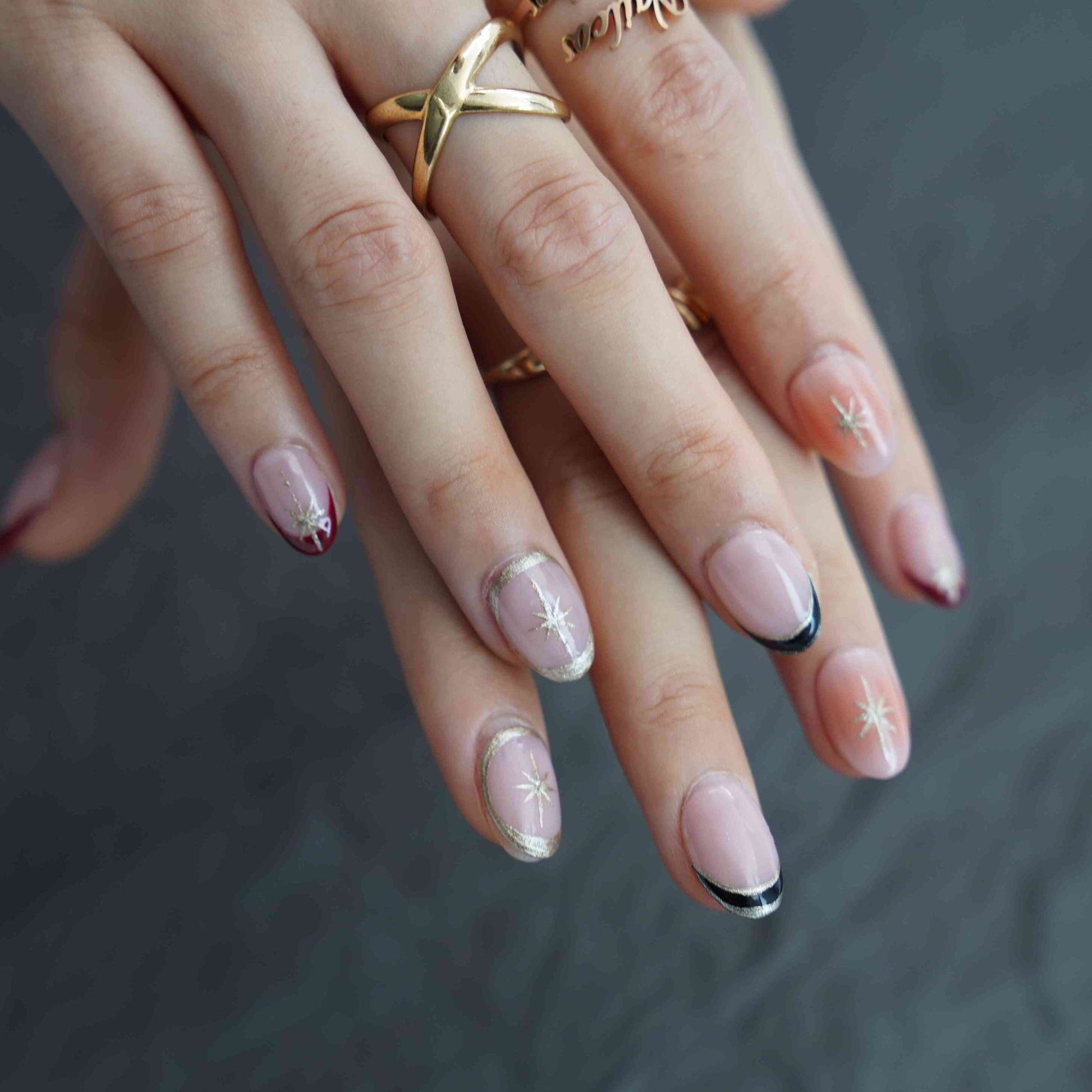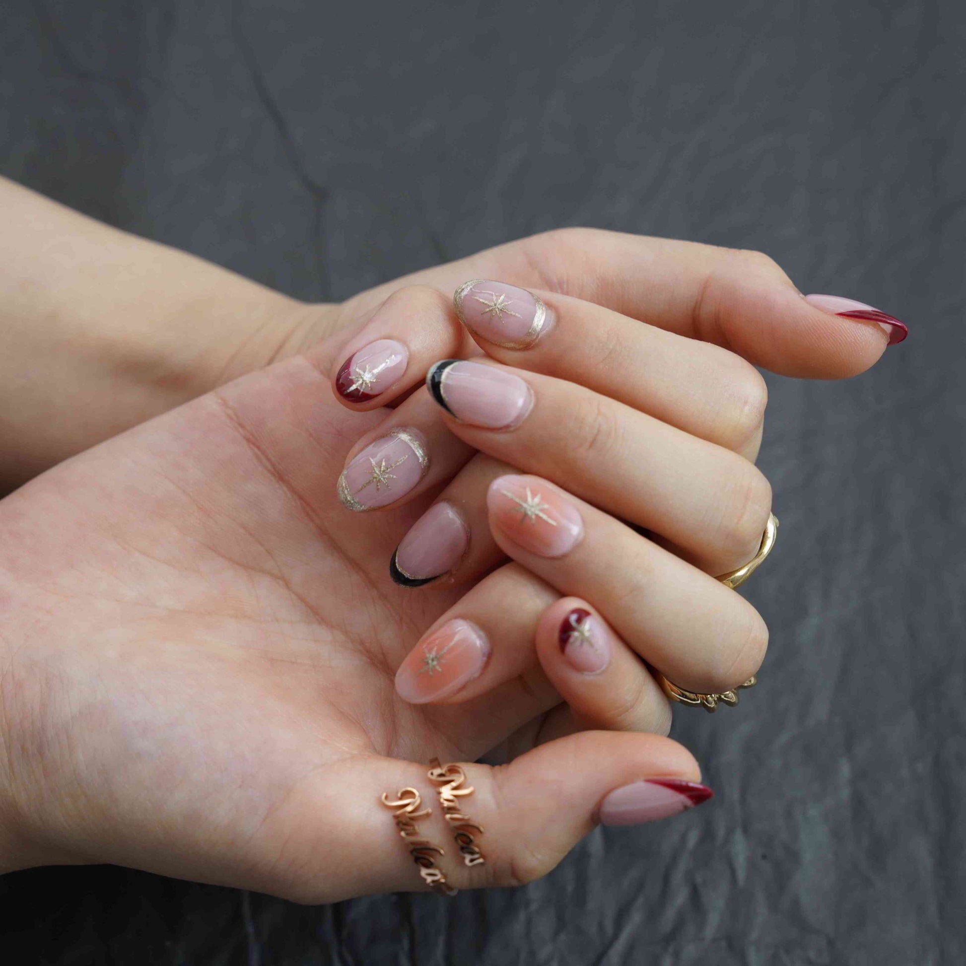 Starveil press-on nails feature a Short Round shape in a French, Autumn style. The warm and elegant color palette evokes the charm of a French fall. Our diverse, handmade brand infuses creativity into each nail. They're 100% handmade for salon-quality wear.